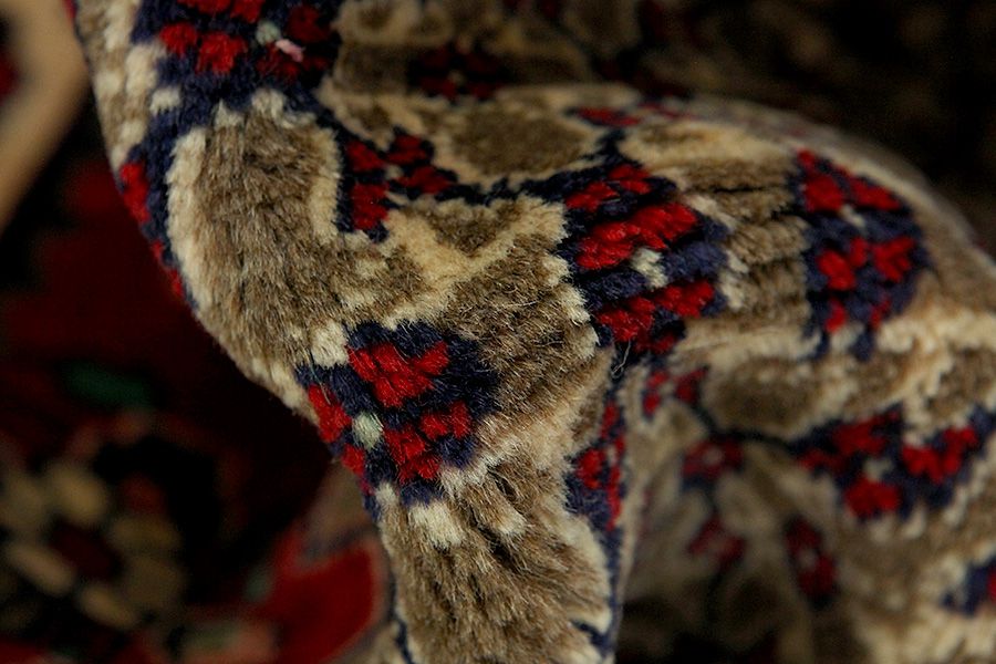 Abrash: Λόγω της διαφορετικής λιπαρότητας των μαλλιών και της διαφορετικής ποσότητας αλατιού κατά την διαδικασία βαφής τα μαλλιά έχουν διαφορετική απορροφητικότητα σε ποσότητα χρώματος. Πριν την ύφανση δεν είναι τόσο ορατό. Κατά την διάρκεια της ύφανσης όμως γίνονται σειρές αποχρώσεων του ιδίου χρώματος. Αυτό λέγεται Αμπράς (Abrash) -που στα Περσικά σημαίνει συννεφάκι- και καταδεικνύει τη φυσικότητα και τη γνησιότητα των μαλλιών στα οποία δε χρησιμοποιήθηκαν καθόλου χημικά μέσα. Παραδείγματα