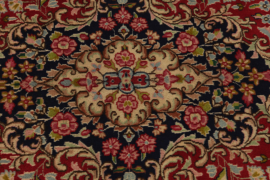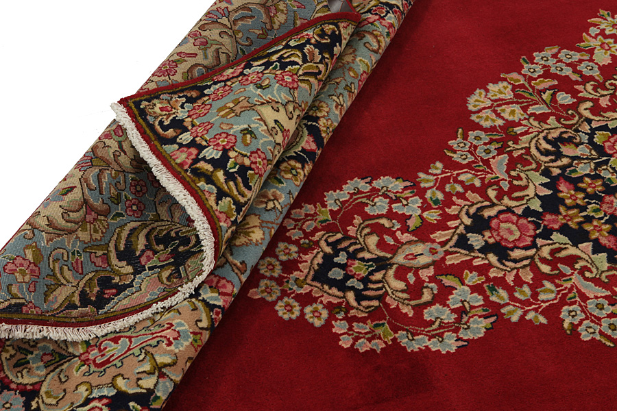Χαλιά Kerman: Η ύφανση χαλιών, παλιά παράδοση στο Κερμάν (Kerman), είναι μια από τις κυριότερες βιομηχανίες της πόλης. Τα χαλιά που παράγονται στην πόλη είναι γνωστά διεθνώς. Το παλαιότερο χαλί που βρέθηκε στο Kerman χρονολογείται πριν 500 χρόνια, γεγονός που αποδεικνύει την αντοχή και την ποιότητα των χαλιών που υφαίνονται εκεί. Επίσης κατασκευάζονται όπως παλιά και άλλα κλωστοϋφαντουργικά προϊόντα από βαμβάκι ή από μαλλί, όπως σάλια και λεπτά υφάσματα. Τα χαλιά Kerman χαρακτηρίζονται από λαμπερά χρώματα και πλήθος πανέμορφων λουλουδιών με γιρλάντες και μενταγιόν. Τα μαλλιά στην περιοχή Κερμάν είναι πολύ καλής ποιότητας με λιπαρότητα που τα κάνει πολύ λαμπερά.