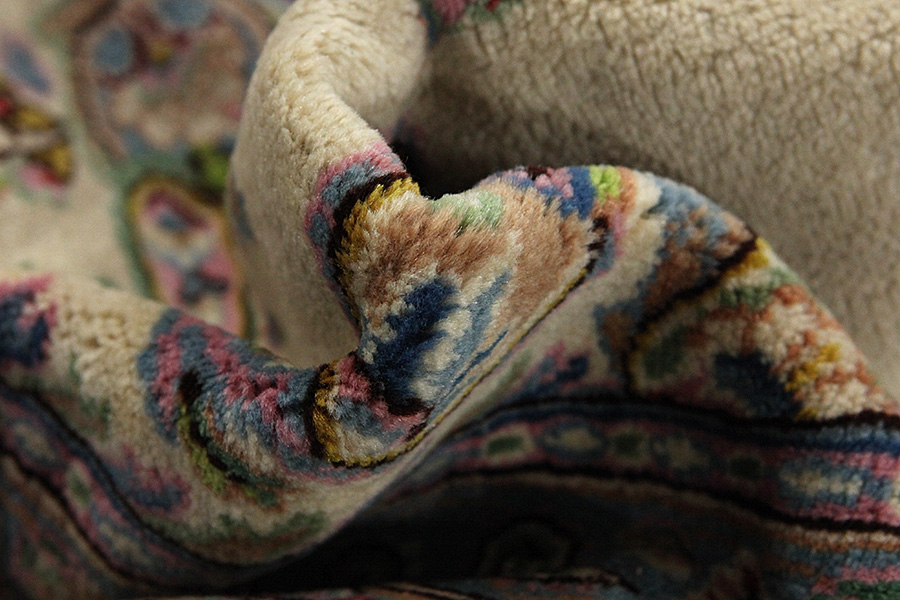 Abrash: Λόγω της διαφορετικής λιπαρότητας των μαλλιών και της διαφορετικής ποσότητας αλατιού κατά την διαδικασία βαφής τα μαλλιά έχουν διαφορετική απορροφητικότητα σε ποσότητα χρώματος. Πριν την ύφανση δεν είναι τόσο ορατό. Κατά την διάρκεια της ύφανσης όμως γίνονται σειρές αποχρώσεων του ιδίου χρώματος. Αυτό λέγεται Αμπράς (Abrash) -που στα Περσικά σημαίνει συννεφάκι- και καταδεικνύει τη φυσικότητα και τη γνησιότητα των μαλλιών στα οποία δε χρησιμοποιήθηκαν καθόλου χημικά μέσα. Παραδείγματα