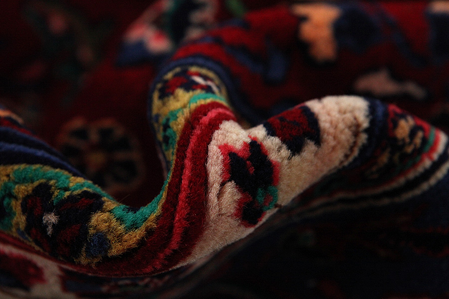 Abrash: Λόγω της διαφορετικής λιπαρότητας των μαλλιών και της διαφορετικής ποσότητας αλατιού κατά την διαδικασία βαφής τα μαλλιά έχουν διαφορετική απορροφητικότητα σε ποσότητα χρώματος. Πριν την ύφανση δεν είναι τόσο ορατό. Κατά την διάρκεια της ύφανσης όμως γίνονται σειρές αποχρώσεων του ιδίου χρώματος. Αυτό λέγεται Αμπράς (Abrash) -που στα Περσικά σημαίνει συννεφάκι- και καταδεικνύει τη φυσικότητα και τη γνησιότητα των μαλλιών στα οποία δε χρησιμοποιήθηκαν καθόλου χημικά μέσα. Παραδείγματα