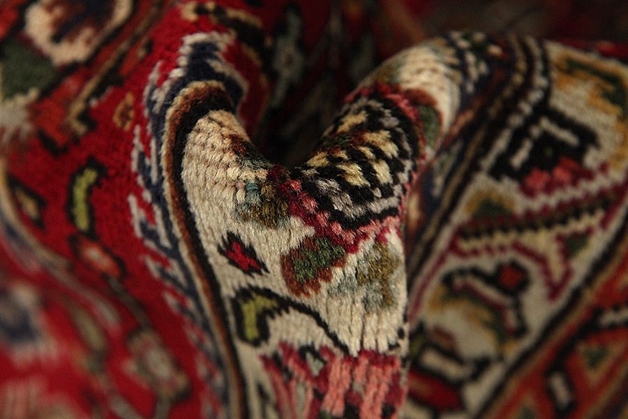 Abrash: Λόγω της διαφορετικής λιπαρότητας των μαλλιών και της διαφορετικής ποσότητας αλατιού κατά την διαδικασία βαφής τα μαλλιά έχουν διαφορετική απορροφητικότητα σε ποσότητα χρώματος. Πριν την ύφανση δεν είναι τόσο ορατό. Κατά την διάρκεια της ύφανσης όμως γίνονται σειρές αποχρώσεων του ιδίου χρώματος. Αυτό λέγεται Αμπράς (Abrash) -που στα Περσικά σημαίνει συννεφάκι- και καταδεικνύει τη φυσικότητα και τη γνησιότητα των μαλλιών στα οποία δε χρησιμοποιήθηκαν καθόλου χημικά μέσα. Παραδείγματα