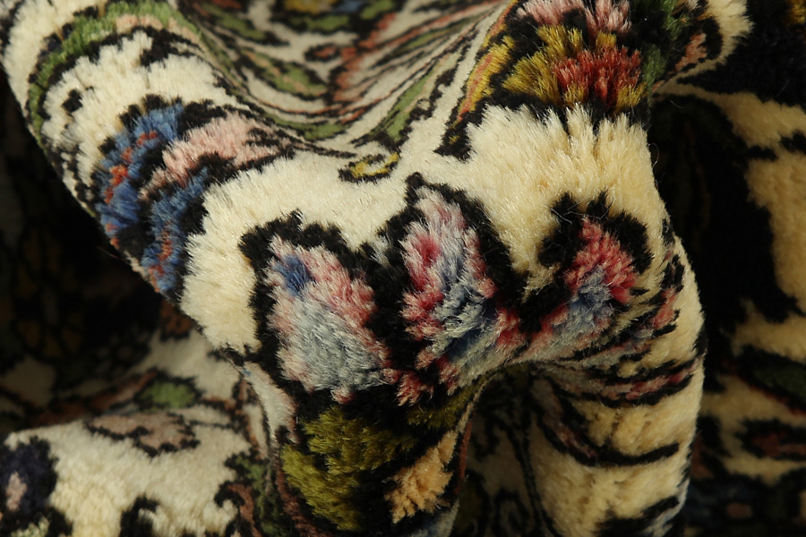 Abrash: Λόγω της διαφορετικής λιπαρότητας των μαλλιών και της διαφορετικής ποσότητας αλατιού κατά την διαδικασία βαφής τα μαλλιά έχουν διαφορετική απορροφητικότητα σε ποσότητα χρώματος. Πριν την ύφανση δεν είναι τόσο ορατό. Κατά την διάρκεια της ύφανσης όμως γίνονται σειρές αποχρώσεων του ιδίου χρώματος. Αυτό λέγεται Αμπράς (Abrash) -που στα Περσικά σημαίνει συννεφάκι- και καταδεικνύει τη φυσικότητα και τη γνησιότητα των μαλλιών στα οποία δε χρησιμοποιήθηκαν καθόλου χημικά μέσα. Παραδείγματα
