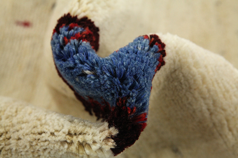 Abrash: Λόγω της διαφορετικής λιπαρότητας των μαλλιών και της διαφορετικής ποσότητας αλατιού κατά την διαδικασία βαφής τα μαλλιά έχουν διαφορετική απορροφητικότητα σε ποσότητα χρώματος. Πριν την ύφανση δεν είναι τόσο ορατό. Κατά την διάρκεια της ύφανσης όμως γίνονται σειρές αποχρώσεων του ιδίου χρώματος. Αυτό λέγεται Αμπράς (Abrash) -που στα Περσικά σημαίνει συννεφάκι- και καταδεικνύει τη φυσικότητα και τη γνησιότητα των μαλλιών στα οποία δε χρησιμοποιήθηκαν καθόλου χημικά μέσα. Παραδείγματα