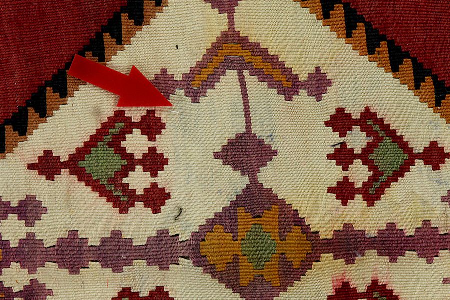 Abrash: Λόγω της διαφορετικής λιπαρότητας των μαλλιών και της διαφορετικής ποσότητας αλατιού κατά την διαδικασία βαφής τα μαλλιά έχουν διαφορετική απορροφητικότητα σε ποσότητα χρώματος. Πριν την ύφανση δεν είναι τόσο ορατό. Κατά την διάρκεια της ύφανσης όμως γίνονται σειρές αποχρώσεων του ιδίου χρώματος. Αυτό λέγεται Αμπράς (Abrash) -που στα Περσικά σημαίνει συννεφάκι- και καταδεικνύει τη φυσικότητα και τη γνησιότητα των μαλλιών στα οποία δε χρησιμοποιήθηκαν καθόλου χημικά μέσα. Παραδείγματα