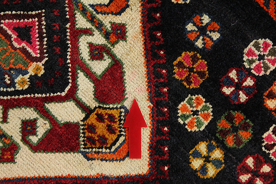 Abrash: Λόγω της διαφορετικής λιπαρότητας των μαλλιών και της διαφορετικής ποσότητας αλατιού κατά την διαδικασία βαφής τα μαλλιά έχουν διαφορετική απορροφητικότητα σε ποσότητα χρώματος. Πριν την ύφανση δεν είναι τόσο ορατό. Κατά την διάρκεια της ύφανσης όμως γίνονται σειρές αποχρώσεων του ιδίου χρώματος. Αυτό λέγεται Αμπράς (Abrash) -που στα Περσικά σημαίνει συννεφάκι- και καταδεικνύει τη φυσικότητα και τη γνησιότητα των μαλλιών στα οποία δε χρησιμοποιήθηκαν καθόλου χημικά μέσα. Παραδείγματα