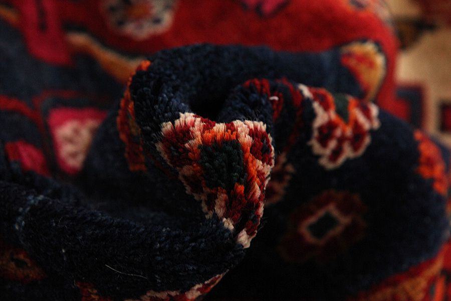 Abrash: Λόγω της διαφορετικής λιπαρότητας των μαλλιών και της διαφορετικής ποσότητας αλατιού κατά την διαδικασία βαφής τα μαλλιά έχουν διαφορετική απορροφητικότητα σε ποσότητα χρώματος. Πριν την ύφανση δεν είναι τόσο ορατό. Κατά την διάρκεια της ύφανσης όμως γίνονται σειρές αποχρώσεων του ιδίου χρώματος. Αυτό λέγεται Αμπράς (Abrash) -που στα Περσικά σημαίνει συννεφάκι- και καταδεικνύει τη φυσικότητα και τη γνησιότητα των μαλλιών στα οποία δε χρησιμοποιήθηκαν καθόλου χημικά μέσα. Παραδείγματα