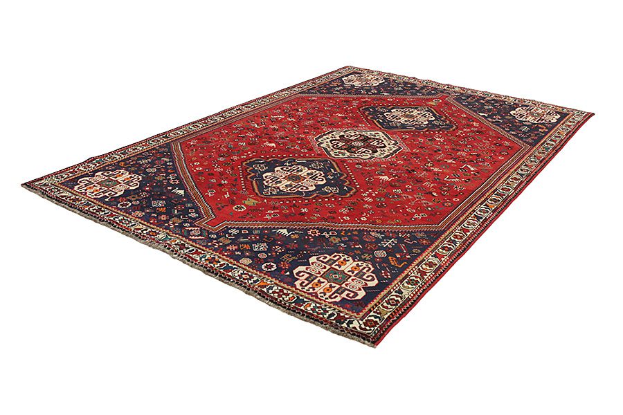 Χαλιά Shiraz: Τα χαλιά Shiraz αποτελούν είδος Περσικού χαλιού που κατασκευάζεται στα χωρία γύρω από την πόλη Shiraz. Τα σχέδια τους είναι γεωμετρικά, και χαρακτηρίζονται από ένα μενταγιόν στο κέντρο του χαλιού. Τα χρώματα τους είναι κόκκικο και καφέ και συχνά χρησιμοποιούν το σχήμα διαμαντιού ως κύριο μοτίβο.