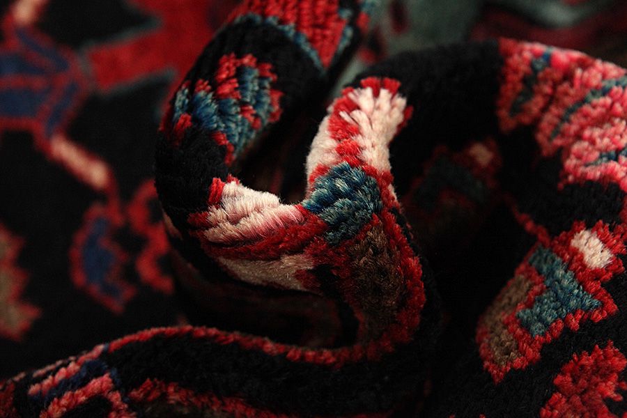 Abrash: Λόγω της διαφορετικής λιπαρότητας των μαλλιών και της διαφορετικής ποσότητας αλατιού κατά την διαδικασία βαφής τα μαλλιά έχουν διαφορετική απορροφητικότητα σε ποσότητα χρώματος. Πριν την ύφανση δεν είναι τόσο ορατό. Κατά την διάρκεια της ύφανσης όμως γίνονται σειρές αποχρώσεων του ιδίου χρώματος. Αυτό λέγεται Αμπράς (Abrash) -που στα Περσικά σημαίνει συννεφάκι- και καταδεικνύει τη φυσικότητα και τη γνησιότητα των μαλλιών στα οποία δε χρησιμοποιήθηκαν καθόλου χημικά μέσα. Παραδείγματα