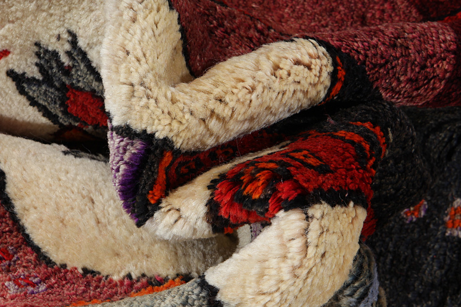 Abrash: Λόγω της διαφορετικής λιπαρότητας των μαλλιών και της διαφορετικής ποσότητας αλατιού κατά την διαδικασία βαφής τα μαλλιά έχουν διαφορετική απορροφητικότητα σε ποσότητα χρώματος. Πριν την ύφανση δεν είναι τόσο ορατό. Κατά την διάρκεια της ύφανσης όμως γίνονται σειρές αποχρώσεων του ιδίου χρώματος. Αυτό λέγεται Αμπράς (Abrash) -που στα Περσικά σημαίνει συννεφάκι- και καταδεικνύει τη φυσικότητα και τη γνησιότητα των μαλλιών στα οποία δε χρησιμοποιήθηκαν καθόλου χημικά μέσα. Παραδείγματα