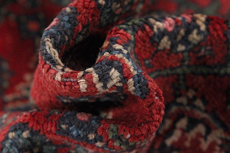 Abrash: Λόγω της διαφορετικής λιπαρότητας των μαλλιών και της διαφορετικής ποσότητας αλατιού κατά την διαδικασία βαφής τα μαλλιά έχουν διαφορετική απορροφητικότητα σε ποσότητα χρώματος. Πριν την ύφανση δεν είναι τόσο ορατό. Κατά την διάρκεια της ύφανσης όμως γίνονται σειρές αποχρώσεων του ιδίου χρώματος. Αυτό λέγεται Αμπράς (Abrash) -που στα Περσικά σημαίνει συννεφάκι- και καταδεικνύει τη φυσικότητα και τη γνησιότητα των μαλλιών στα οποία δε χρησιμοποιήθηκαν καθόλου χημικά μέσα. Παραδείγματα
