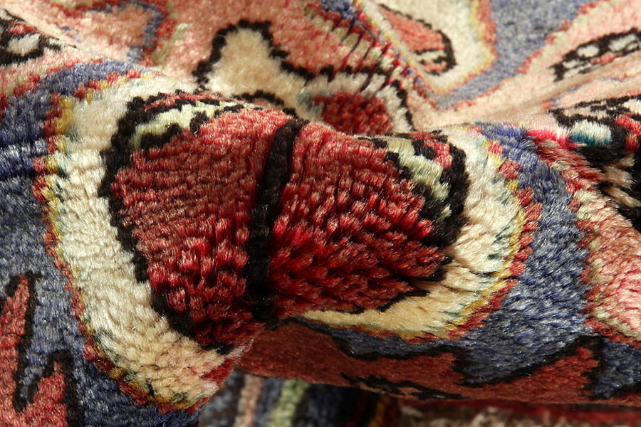 Abrash: Λόγω της διαφορετικής λιπαρότητας των μαλλιών και της διαφορετικής ποσότητας αλατιού κατά την διαδικασία βαφής τα μαλλιά έχουν διαφορετική απορροφητικότητα σε ποσότητα χρώματος. Πριν την ύφανση δεν είναι τόσο ορατό. Κατά την διάρκεια της ύφανσης όμως γίνονται σειρές αποχρώσεων του ιδίου χρώματος. Αυτό λέγεται Αμπράς (Abrash) -που στα Περσικά σημαίνει συννεφάκι- και καταδεικνύει τη φυσικότητα και τη γνησιότητα των μαλλιών στα οποία δε χρησιμοποιήθηκαν καθόλου χημικά μέσα. Παραδείγματα