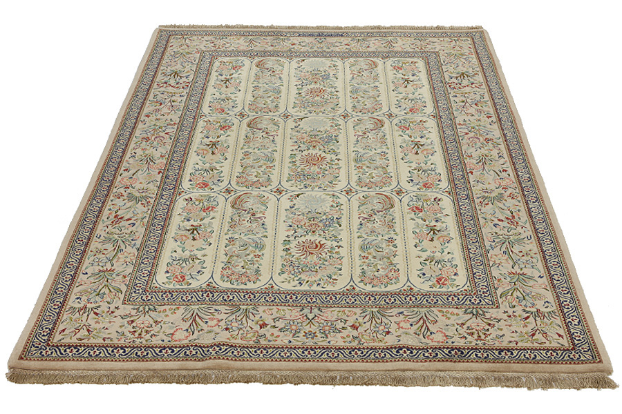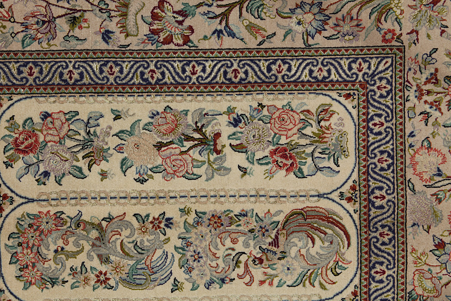 Χαλιά Isfahan: Στο κέντρο του Ιραν ανάμεσα από τα όρη Ζάγκρος (Zagros) και την έρημο, βρίσκεται η πόλη του Ισφαχάν (Isfahan). Σήμερα είναι μια σημαντική βιομηχανική πόλη με πληθυσμό 1,2 εκατομμύρια κατοίκους. Αρχιτεκτονικά η πόλη είναι ένα αριστούργημα. Τα παλιά χαλιά του Isfahan σε αντίθεση με τα νεώτερα δεν είχαν κεντρικό μενταγιόν. Όλη η επιφάνεια του χαλιού ήταν γεμάτη με ελικοειδή περίτεχνα λουλούδια και λουλούδια ανθέμια (palmettes). Τα νεότερα χαλιά Isfahan δεν μπορούν να συγκριθούν με κείνα τα παλιά που κατασκευάζονταν αποκλειστικά για ευγενείς. Συνεχίζοντας όμως την παράδοση και τα σημερινά χαλιά του Isfahan είναι πολύ λεπτά στην ύφανσή τους και κουρεύονται πολύ χαμηλά για να αναδειχθεί καλύτερα το σχέδιο τους. Στην ύφανση χρησιμοποιούν επίσης μετάξι, για να αναδείξουν ορισμένες περιοχές του σχεδίου, κυρίως στα λουλούδια. Το στημόνι είναι από μετάξι ή από βαμβάκι.