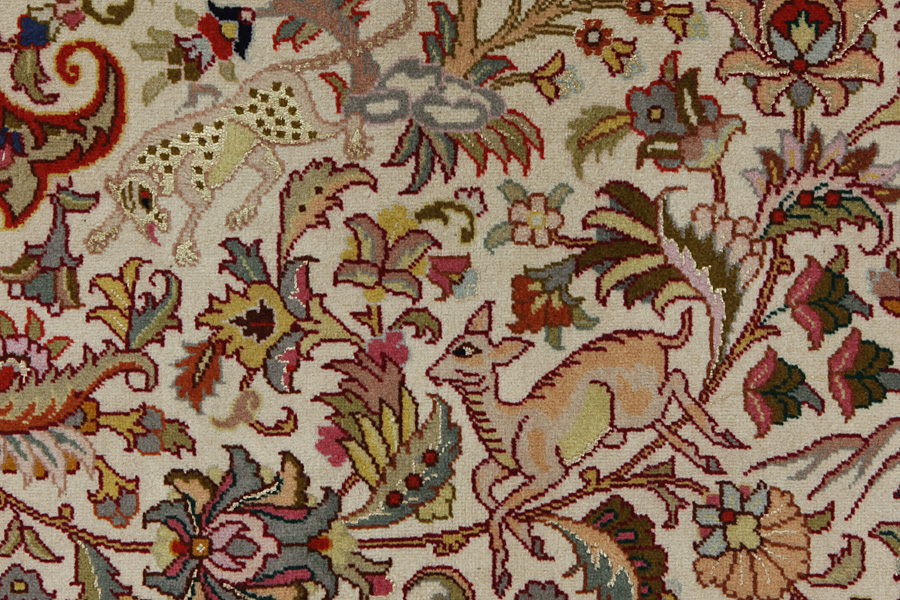 Χαλιά Tabriz: Η πόλη Ταμπρίζ (Tabriz) είναι η πρωτεύουσα της επαρχίας Αζερμπαϊτζάν, στο Βορειοδυτικό Ιράν. Ως το τέλος της εποχής των καραβανιών ήταν το σπουδαιότερο κέντρο εμπορίου και ύφανσης χαλιών. Από εδώ προμηθευόταν η Δύση τα αριστουργήματα που ύφαιναν ονομαστοί και ικανότατοι υφαντουργοί. Η υψηλή ποιότητά τους έκανε τα χαλιά Tabriz πολύ γνωστά στις παγκόσμιες αγορές. Δημιουργήθηκαν πολλά εργαστήρια χειροποίητων χαλιών όπου υφαίνονταν παλιά και νέα σχέδια με πολύ μεγάλη πυκνότητα σε κόμπους και με υλικά άριστης ποιότητας. Το μετάξι και το λεπτό ποιοτικό μαλλί καθιστούν τα χαλιά πολύ υψηλής κλάσης. Καμιά άλλη πόλη της Περσίας δεν παρήγαγε τόσο μεγάλη σε όγκο και ποικιλία ποσότητα χαλιών. Με μενταγιόν ή χωρίς, τα σχέδιά τους είναι γεμάτα φαντασία και μοναδικότητα. Λουλούδια, παραστάσεις και στίχοι ποιημάτων διακοσμούν επίσης τα χαλιά. Τα χρώματα που κυριαρχούν είναι το μπεζ, το μπλε και το κόκκινο.