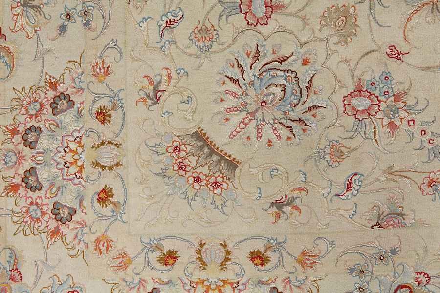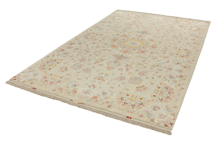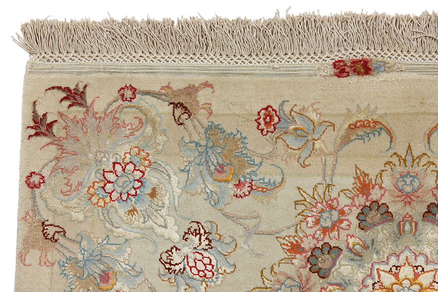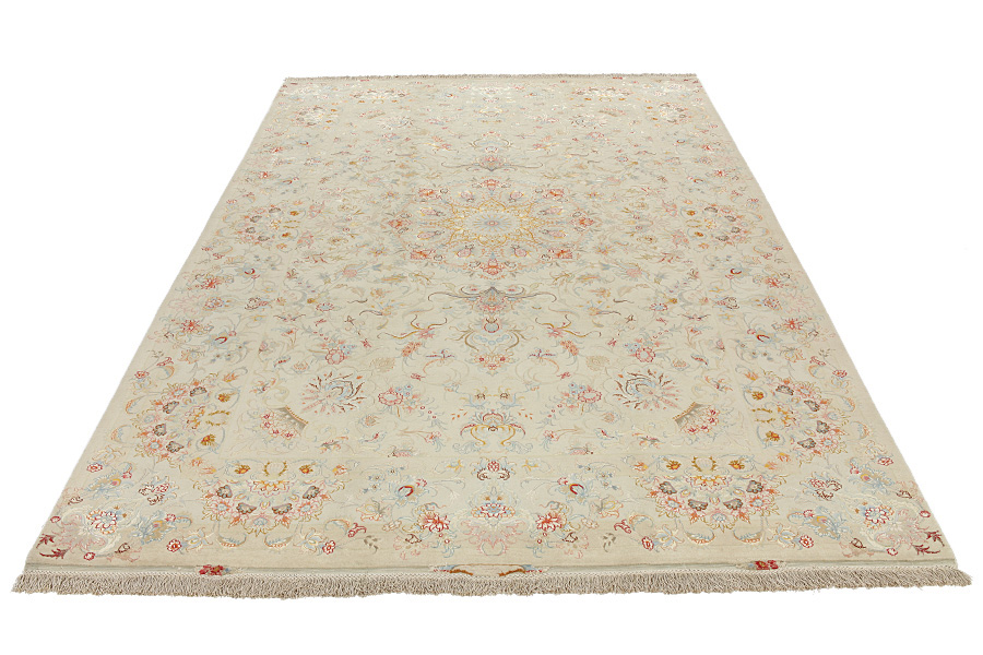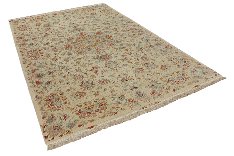 Χαλιά Tabriz: Η πόλη Ταμπρίζ (Tabriz) είναι η πρωτεύουσα της επαρχίας Αζερμπαϊτζάν, στο Βορειοδυτικό Ιράν. Ως το τέλος της εποχής των καραβανιών ήταν το σπουδαιότερο κέντρο εμπορίου και ύφανσης χαλιών. Από εδώ προμηθευόταν η Δύση τα αριστουργήματα που ύφαιναν ονομαστοί και ικανότατοι υφαντουργοί. Η υψηλή ποιότητά τους έκανε τα χαλιά Tabriz πολύ γνωστά στις παγκόσμιες αγορές. Δημιουργήθηκαν πολλά εργαστήρια χειροποίητων χαλιών όπου υφαίνονταν παλιά και νέα σχέδια με πολύ μεγάλη πυκνότητα σε κόμπους και με υλικά άριστης ποιότητας. Το μετάξι και το λεπτό ποιοτικό μαλλί καθιστούν τα χαλιά πολύ υψηλής κλάσης. Καμιά άλλη πόλη της Περσίας δεν παρήγαγε τόσο μεγάλη σε όγκο και ποικιλία ποσότητα χαλιών. Με μενταγιόν ή χωρίς, τα σχέδιά τους είναι γεμάτα φαντασία και μοναδικότητα. Λουλούδια, παραστάσεις και στίχοι ποιημάτων διακοσμούν επίσης τα χαλιά. Τα χρώματα που κυριαρχούν είναι το μπεζ, το μπλε και το κόκκινο.