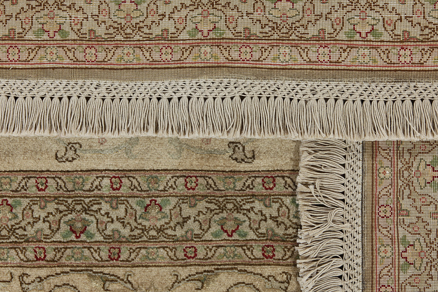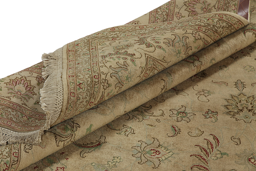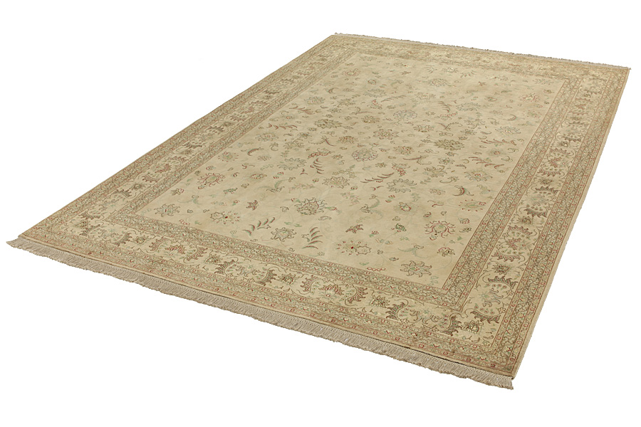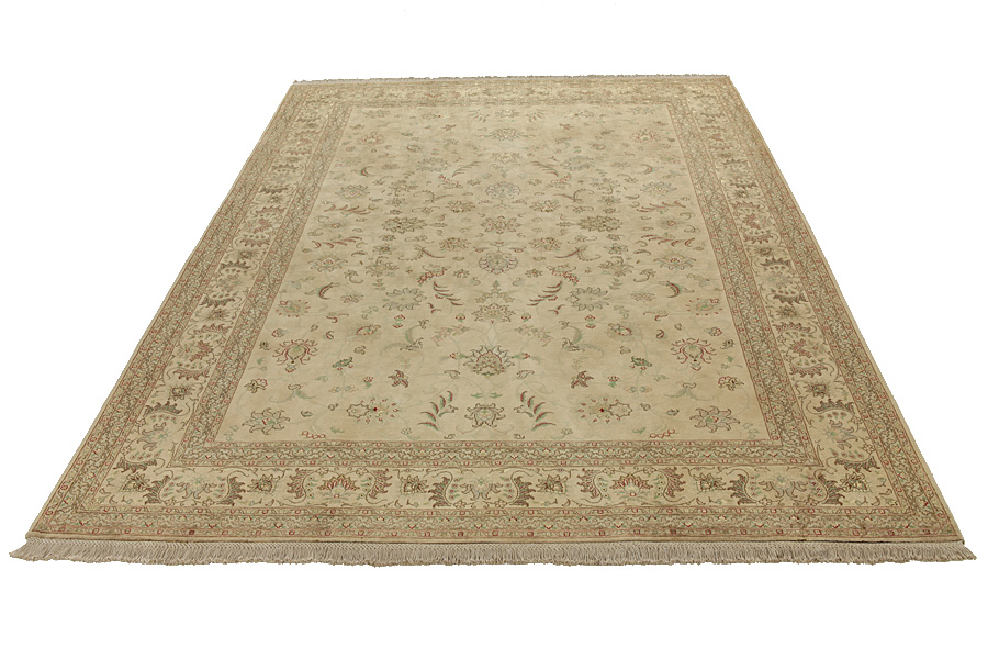 Χαλιά Tabriz: Η πόλη Ταμπρίζ (Tabriz) είναι η πρωτεύουσα της επαρχίας Αζερμπαϊτζάν, στο Βορειοδυτικό Ιράν. Ως το τέλος της εποχής των καραβανιών ήταν το σπουδαιότερο κέντρο εμπορίου και ύφανσης χαλιών. Από εδώ προμηθευόταν η Δύση τα αριστουργήματα που ύφαιναν ονομαστοί και ικανότατοι υφαντουργοί. Η υψηλή ποιότητά τους έκανε τα χαλιά Tabriz πολύ γνωστά στις παγκόσμιες αγορές. Δημιουργήθηκαν πολλά εργαστήρια χειροποίητων χαλιών όπου υφαίνονταν παλιά και νέα σχέδια με πολύ μεγάλη πυκνότητα σε κόμπους και με υλικά άριστης ποιότητας. Το μετάξι και το λεπτό ποιοτικό μαλλί καθιστούν τα χαλιά πολύ υψηλής κλάσης. Καμιά άλλη πόλη της Περσίας δεν παρήγαγε τόσο μεγάλη σε όγκο και ποικιλία ποσότητα χαλιών. Με μενταγιόν ή χωρίς, τα σχέδιά τους είναι γεμάτα φαντασία και μοναδικότητα. Λουλούδια, παραστάσεις και στίχοι ποιημάτων διακοσμούν επίσης τα χαλιά. Τα χρώματα που κυριαρχούν είναι το μπεζ, το μπλε και το κόκκινο.