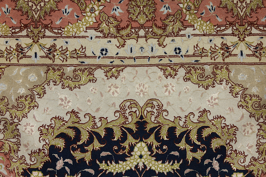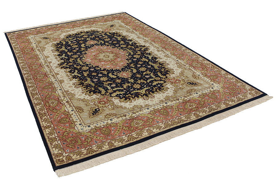 Χαλιά Tabriz: Η πόλη Ταμπρίζ (Tabriz) είναι η πρωτεύουσα της επαρχίας Αζερμπαϊτζάν, στο Βορειοδυτικό Ιράν. Ως το τέλος της εποχής των καραβανιών ήταν το σπουδαιότερο κέντρο εμπορίου και ύφανσης χαλιών. Από εδώ προμηθευόταν η Δύση τα αριστουργήματα που ύφαιναν ονομαστοί και ικανότατοι υφαντουργοί. Η υψηλή ποιότητά τους έκανε τα χαλιά Tabriz πολύ γνωστά στις παγκόσμιες αγορές. Δημιουργήθηκαν πολλά εργαστήρια χειροποίητων χαλιών όπου υφαίνονταν παλιά και νέα σχέδια με πολύ μεγάλη πυκνότητα σε κόμπους και με υλικά άριστης ποιότητας. Το μετάξι και το λεπτό ποιοτικό μαλλί καθιστούν τα χαλιά πολύ υψηλής κλάσης. Καμιά άλλη πόλη της Περσίας δεν παρήγαγε τόσο μεγάλη σε όγκο και ποικιλία ποσότητα χαλιών. Με μενταγιόν ή χωρίς, τα σχέδιά τους είναι γεμάτα φαντασία και μοναδικότητα. Λουλούδια, παραστάσεις και στίχοι ποιημάτων διακοσμούν επίσης τα χαλιά. Τα χρώματα που κυριαρχούν είναι το μπεζ, το μπλε και το κόκκινο.