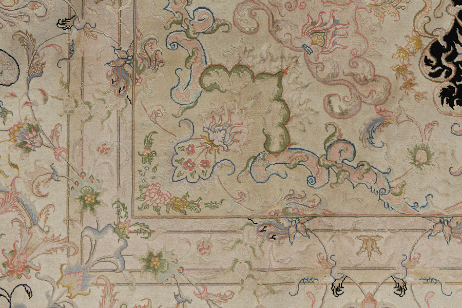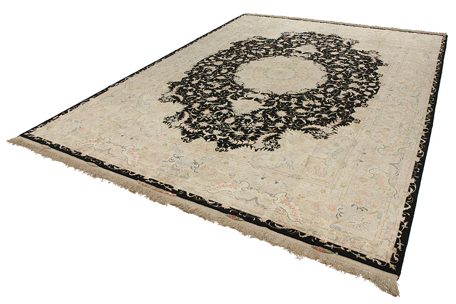 Χαλιά Tabriz: Η πόλη Ταμπρίζ (Tabriz) είναι η πρωτεύουσα της επαρχίας Αζερμπαϊτζάν, στο Βορειοδυτικό Ιράν. Ως το τέλος της εποχής των καραβανιών ήταν το σπουδαιότερο κέντρο εμπορίου και ύφανσης χαλιών. Από εδώ προμηθευόταν η Δύση τα αριστουργήματα που ύφαιναν ονομαστοί και ικανότατοι υφαντουργοί. Η υψηλή ποιότητά τους έκανε τα χαλιά Tabriz πολύ γνωστά στις παγκόσμιες αγορές. Δημιουργήθηκαν πολλά εργαστήρια χειροποίητων χαλιών όπου υφαίνονταν παλιά και νέα σχέδια με πολύ μεγάλη πυκνότητα σε κόμπους και με υλικά άριστης ποιότητας. Το μετάξι και το λεπτό ποιοτικό μαλλί καθιστούν τα χαλιά πολύ υψηλής κλάσης. Καμιά άλλη πόλη της Περσίας δεν παρήγαγε τόσο μεγάλη σε όγκο και ποικιλία ποσότητα χαλιών. Με μενταγιόν ή χωρίς, τα σχέδιά τους είναι γεμάτα φαντασία και μοναδικότητα. Λουλούδια, παραστάσεις και στίχοι ποιημάτων διακοσμούν επίσης τα χαλιά. Τα χρώματα που κυριαρχούν είναι το μπεζ, το μπλε και το κόκκινο.