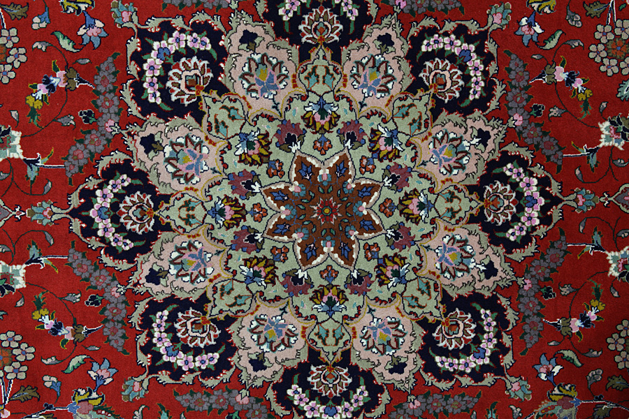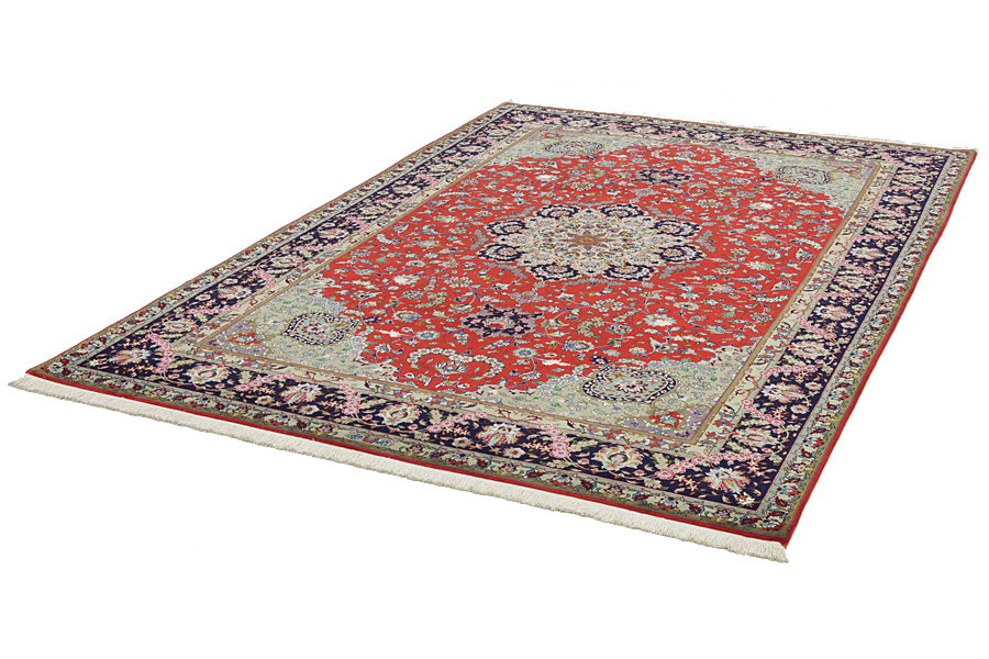 Χαλιά Tabriz: Η πόλη Ταμπρίζ (Tabriz) είναι η πρωτεύουσα της επαρχίας Αζερμπαϊτζάν, στο Βορειοδυτικό Ιράν. Ως το τέλος της εποχής των καραβανιών ήταν το σπουδαιότερο κέντρο εμπορίου και ύφανσης χαλιών. Από εδώ προμηθευόταν η Δύση τα αριστουργήματα που ύφαιναν ονομαστοί και ικανότατοι υφαντουργοί. Η υψηλή ποιότητά τους έκανε τα χαλιά Tabriz πολύ γνωστά στις παγκόσμιες αγορές. Δημιουργήθηκαν πολλά εργαστήρια χειροποίητων χαλιών όπου υφαίνονταν παλιά και νέα σχέδια με πολύ μεγάλη πυκνότητα σε κόμπους και με υλικά άριστης ποιότητας. Το μετάξι και το λεπτό ποιοτικό μαλλί καθιστούν τα χαλιά πολύ υψηλής κλάσης. Καμιά άλλη πόλη της Περσίας δεν παρήγαγε τόσο μεγάλη σε όγκο και ποικιλία ποσότητα χαλιών. Με μενταγιόν ή χωρίς, τα σχέδιά τους είναι γεμάτα φαντασία και μοναδικότητα. Λουλούδια, παραστάσεις και στίχοι ποιημάτων διακοσμούν επίσης τα χαλιά. Τα χρώματα που κυριαρχούν είναι το μπεζ, το μπλε και το κόκκινο.
