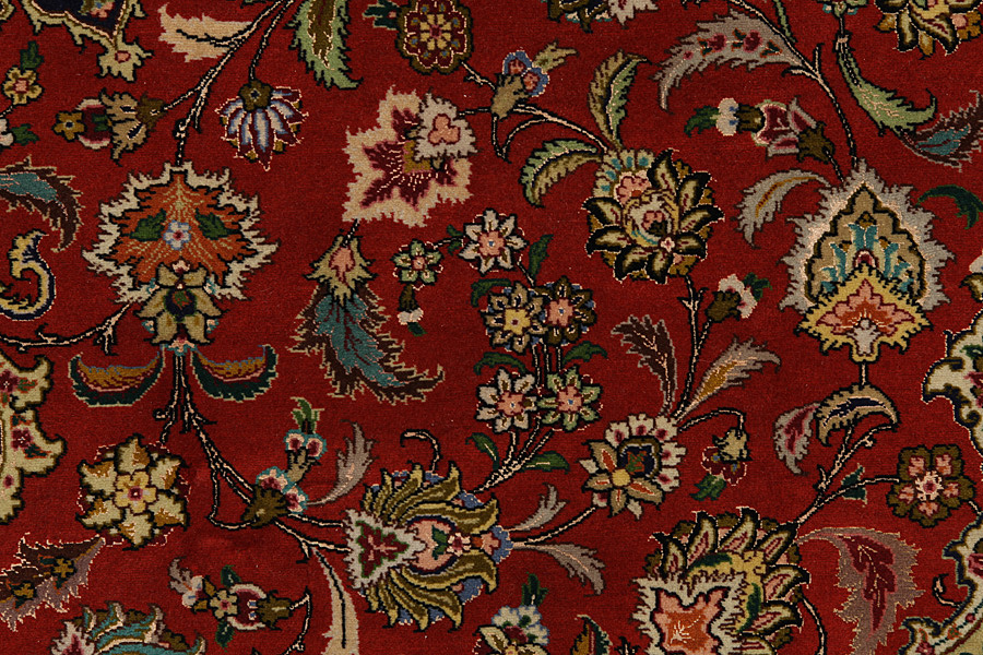 Χαλιά Tabriz: Η πόλη Ταμπρίζ (Tabriz) είναι η πρωτεύουσα της επαρχίας Αζερμπαϊτζάν, στο Βορειοδυτικό Ιράν. Ως το τέλος της εποχής των καραβανιών ήταν το σπουδαιότερο κέντρο εμπορίου και ύφανσης χαλιών. Από εδώ προμηθευόταν η Δύση τα αριστουργήματα που ύφαιναν ονομαστοί και ικανότατοι υφαντουργοί. Η υψηλή ποιότητά τους έκανε τα χαλιά Tabriz πολύ γνωστά στις παγκόσμιες αγορές. Δημιουργήθηκαν πολλά εργαστήρια χειροποίητων χαλιών όπου υφαίνονταν παλιά και νέα σχέδια με πολύ μεγάλη πυκνότητα σε κόμπους και με υλικά άριστης ποιότητας. Το μετάξι και το λεπτό ποιοτικό μαλλί καθιστούν τα χαλιά πολύ υψηλής κλάσης. Καμιά άλλη πόλη της Περσίας δεν παρήγαγε τόσο μεγάλη σε όγκο και ποικιλία ποσότητα χαλιών. Με μενταγιόν ή χωρίς, τα σχέδιά τους είναι γεμάτα φαντασία και μοναδικότητα. Λουλούδια, παραστάσεις και στίχοι ποιημάτων διακοσμούν επίσης τα χαλιά. Τα χρώματα που κυριαρχούν είναι το μπεζ, το μπλε και το κόκκινο.