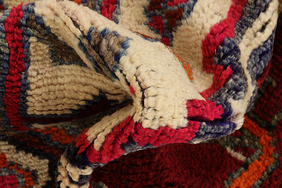 Abrash: Λόγω της διαφορετικής λιπαρότητας των μαλλιών και της διαφορετικής ποσότητας αλατιού κατά την διαδικασία βαφής τα μαλλιά έχουν διαφορετική απορροφητικότητα σε ποσότητα χρώματος. Πριν την ύφανση δεν είναι τόσο ορατό. Κατά την διάρκεια της ύφανσης όμως γίνονται σειρές αποχρώσεων του ιδίου χρώματος. Αυτό λέγεται Αμπράς (Abrash) -που στα Περσικά σημαίνει συννεφάκι- και καταδεικνύει τη φυσικότητα και τη γνησιότητα των μαλλιών στα οποία δε χρησιμοποιήθηκαν καθόλου χημικά μέσα. Παραδείγματα